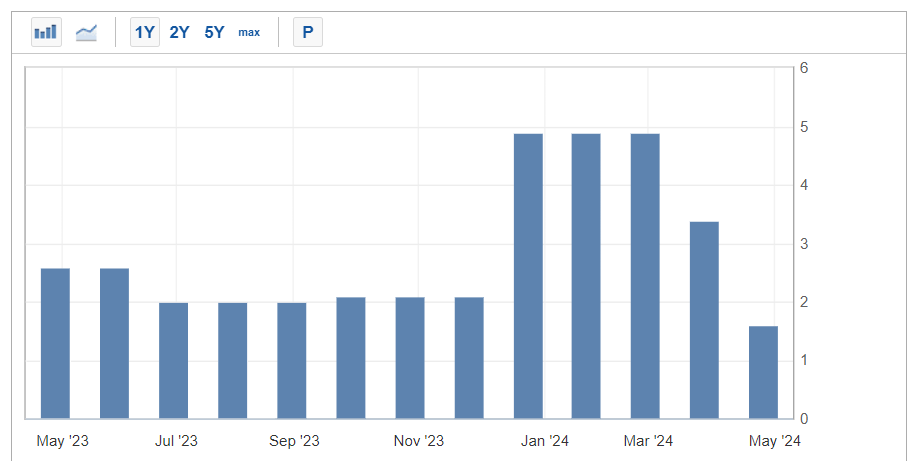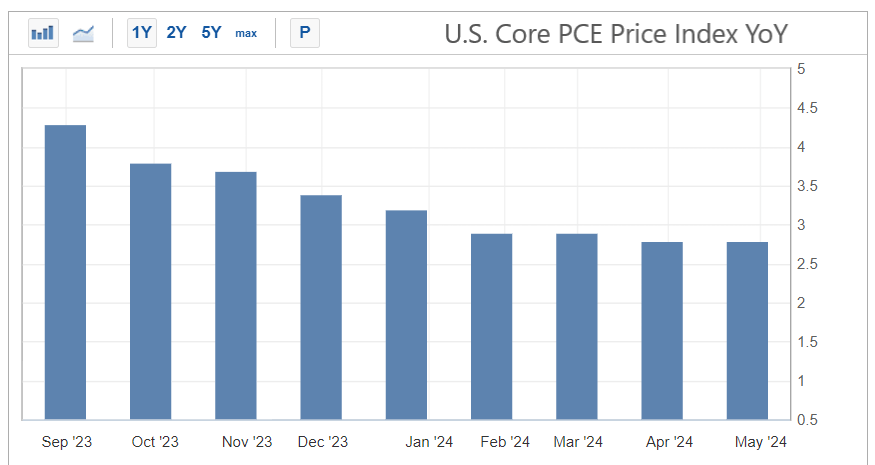Los datos de febrero del Índice de Precios al Consumidor muestran que la inflación está aumentando, alejándose cada vez más del objetivo del 2% de la Reserva Federal. El índice de precios de gastos de consumo personal subyacente, excluidos alimentos y energía, (el favorito de la FED) aumentó un 2,8% interanual en marzo, por encima de lo esperado. El gasto personal aumentó un 0,8% mensual, más que el aumento del ingreso personal del 0,5%. La tasa de ahorro personal cayó al 3,2%, 0,4 puntos porcentuales menos que en febrero y 2 puntos porcentuales completos menos que hace un año, mostrando pocas señales de desaceleración.