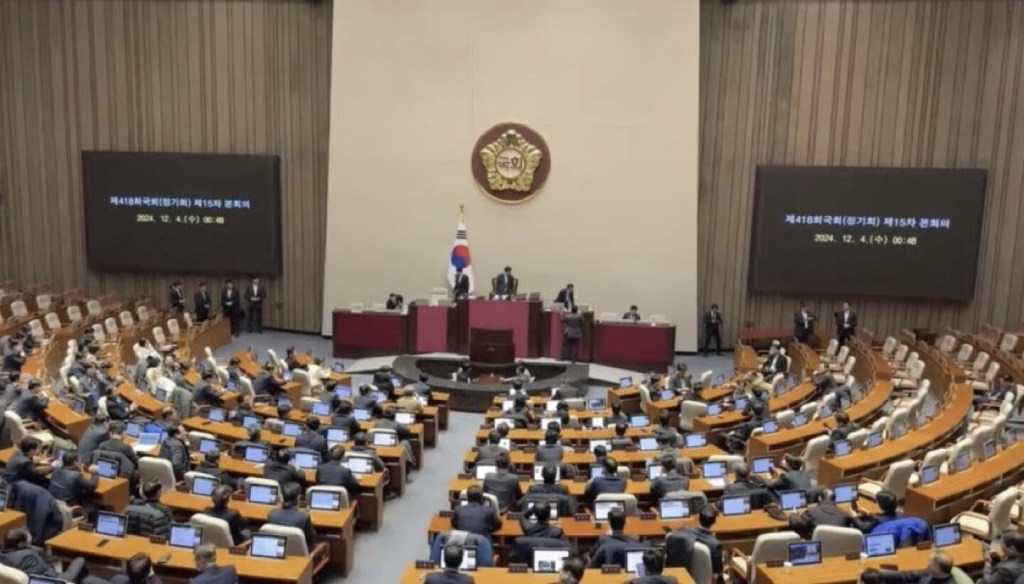 A pesar de las restricciones 190 legisladores del parlamento se reunieron en una sesión de emergencia nocturna y votaron unánimemente para bloquear el decreto de ley marcial anunciado horas antes por el presidente.